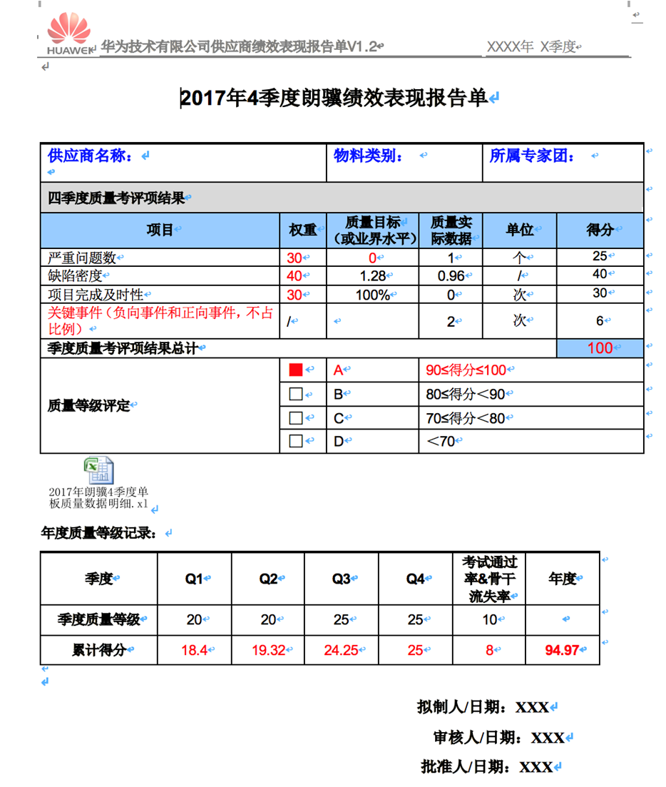 熱烈慶祝朗驥獲得HW2017年度A級(jí)供應(yīng)商,經(jīng)過(guò)朗驥不斷地提升自身技術(shù)能力和優(yōu)化質(zhì)量體系,朗驥在HW全年度績(jī)效考核分?jǐn)?shù)為94.97,獲得A級(jí)PCB設(shè)計(jì)供應(yīng)商!
